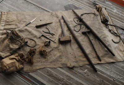 Det er denne bjælkekonstruktion, som opmærksomheden er rettet imod for tiden. Bjælkerne er ganske enkelt surrede sammen med tovværk, og disse surringer eller bændsler står til fornyelse.